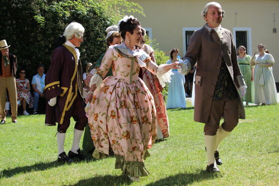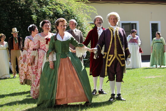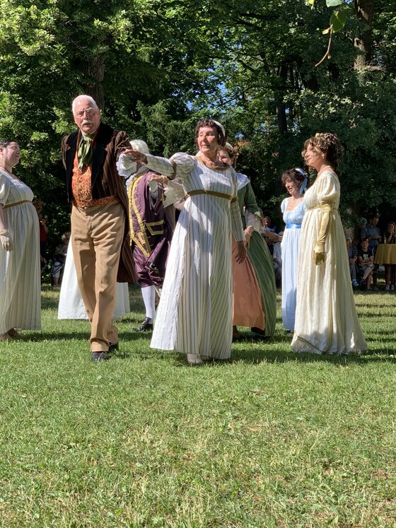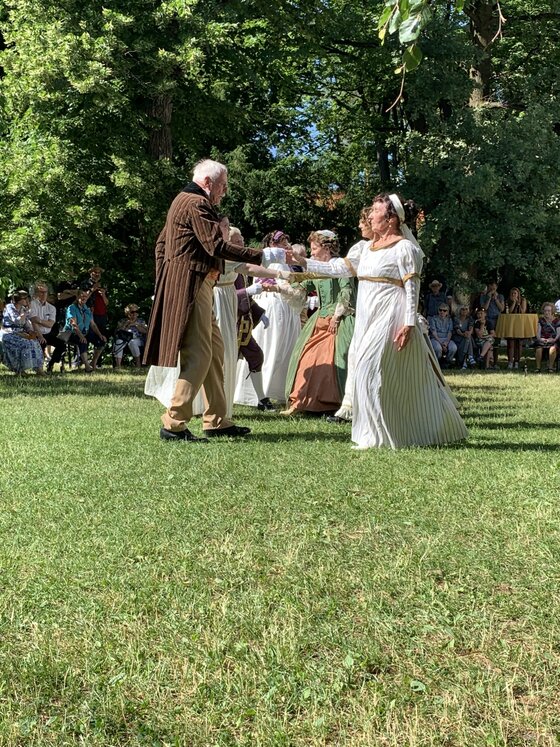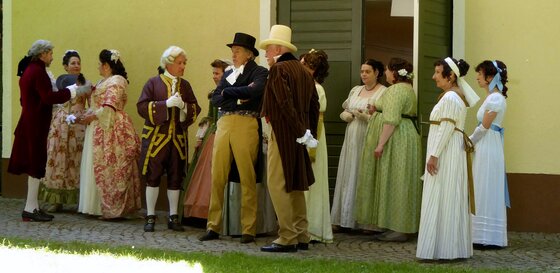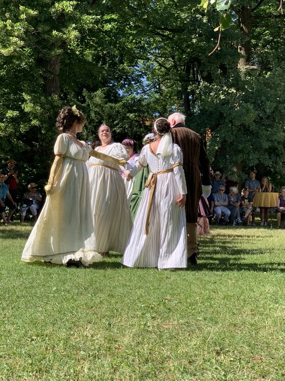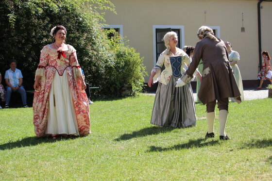 Ein Querschnitt der Tracht aus verschiedenen Epochen, wie wir es auch bei den Tänzen haben.